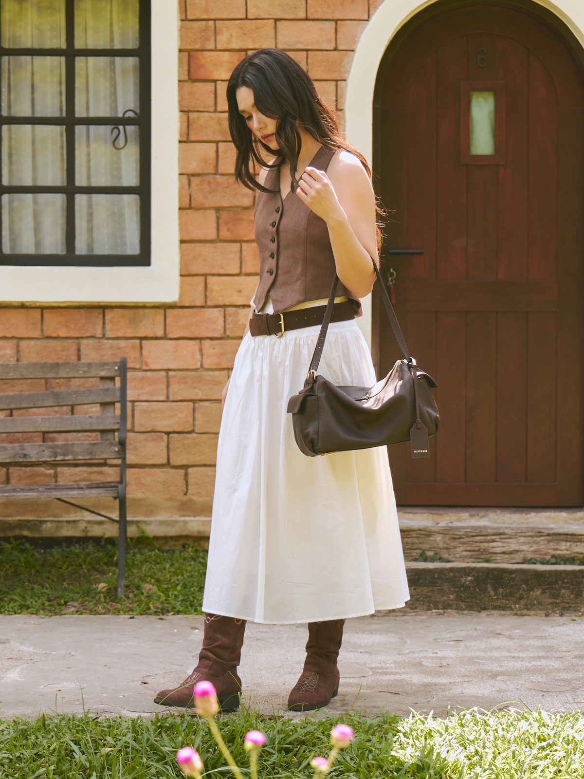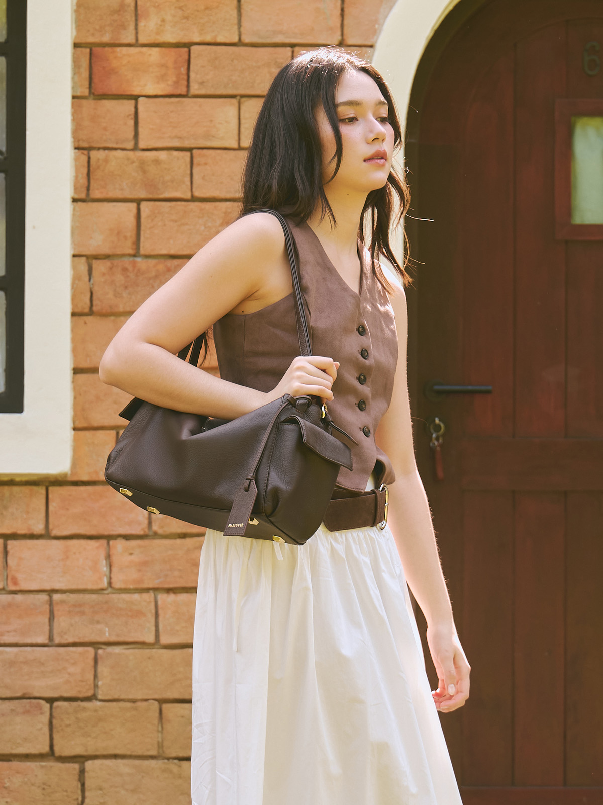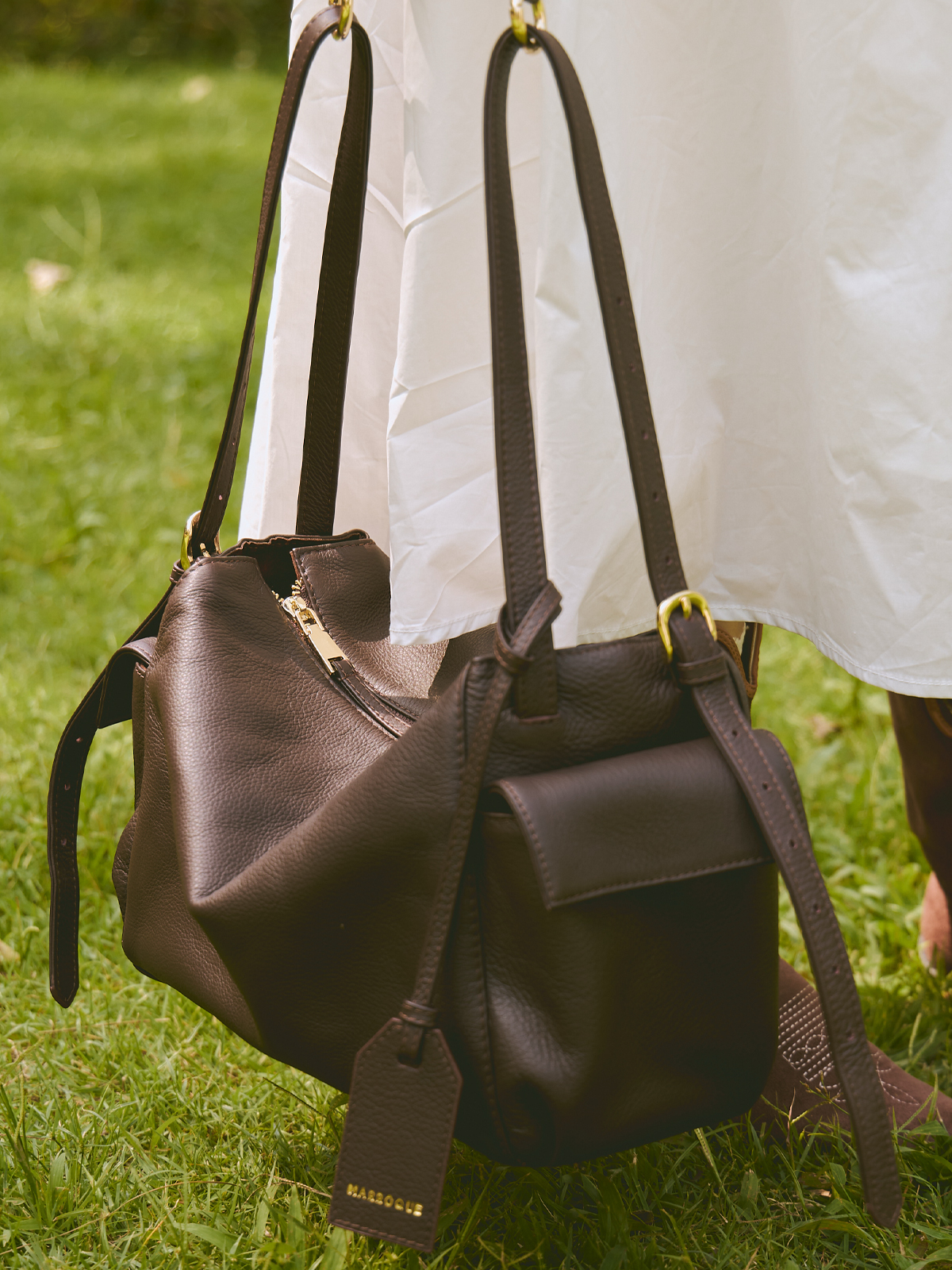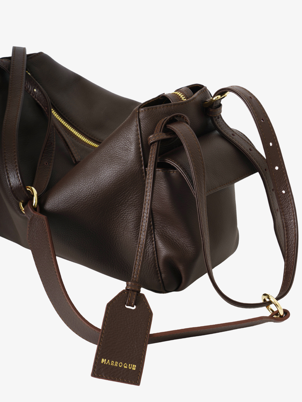 Marroque Indiana Double Side Pocket Crossbody Bag in Dark Brown.